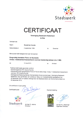 Het ErBo certificaat is een praktisch kwaliteitskeurmerk met op het Bos, Natuur en Landschap gerichte eisen op het gebied van beheer en uitvoering van werkzaamheden, de zorgplicht van de werkgever, vakkennis, omgaan met noodgevallen, milieu, gezondheid en de veiligheid van het publiek. ErBo certificering vindt plaats op bedrijfsniveau. Lees hier meer over SKBNL. www.skbnl.nl