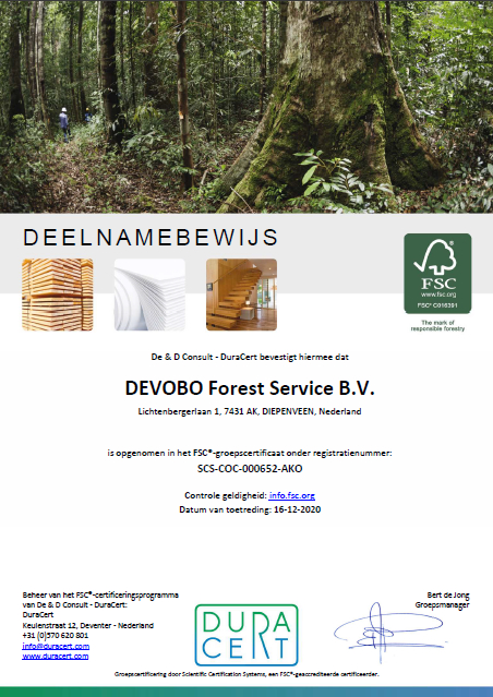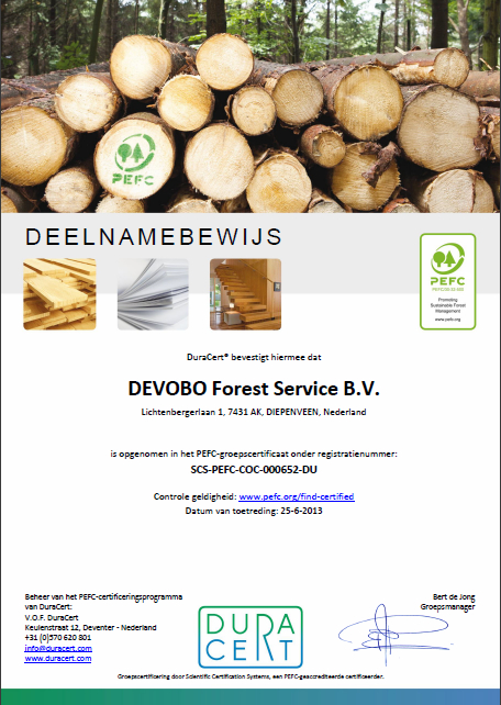 DEVOBO Forest Service B.V. hecht waarde aan kwaliteit en duurzaam beheer van Bos, Natuur en Landschap. Ook externe instanties, zoals PEFC, Stadswerk en stichting SKBNL – ErBo- erkennen de genoemde kernwaarden en verklaren dat door de hieronder weergegeven certificaten DEVOBO voldoet aan het genoemde in deze certificaten en haar werkzaamheden ook als zodanig uitvoert.